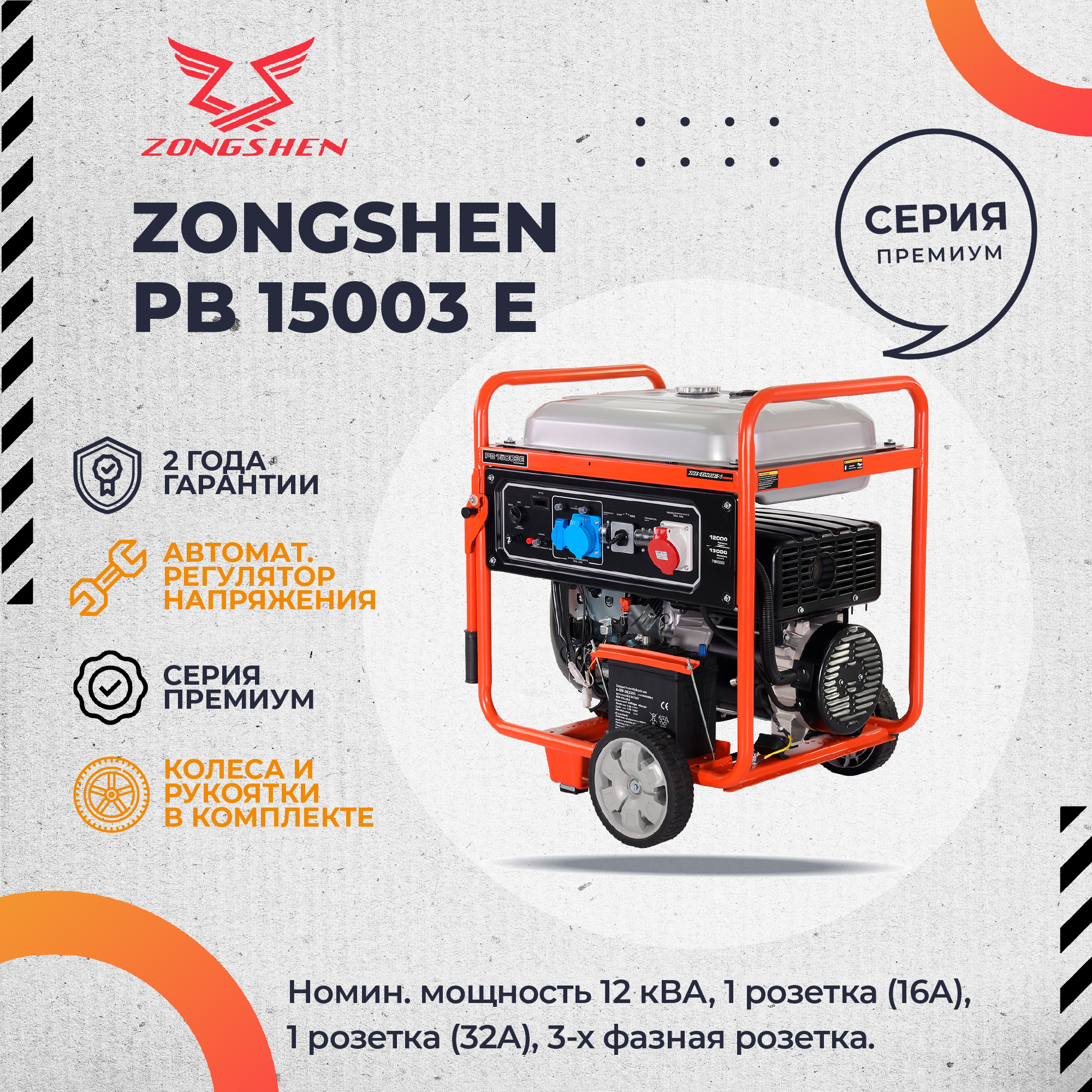 Трехфазный ZONGSHEN PB 15003 E с электрозапуском.